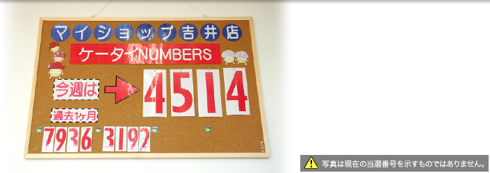 会員様がドコモマイショップに登録された携帯電話番号の下4桁を対象とし、日本宝くじ協会の「NUMBERS4」の抽選結果を当選番号とした懸賞を週1回行い、現金1万円他を景品としてプレゼントします。